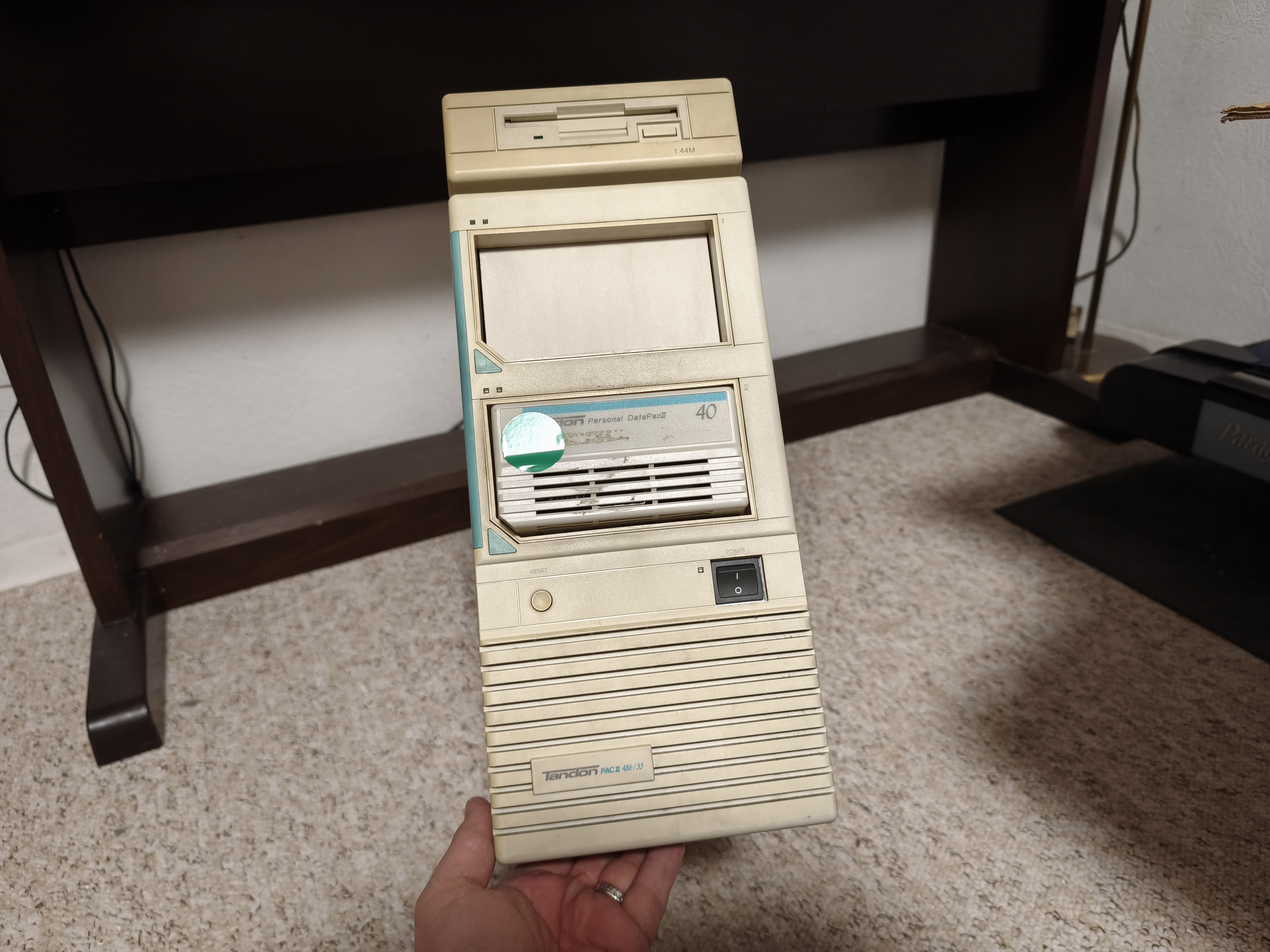Nachdem vor einigen Tagen eine Verlosung innerhalb des V.z.E.k.C. e.V. gewonnen wurde, darf ich nunmehr nach fast 20-25 Jahren wieder einen schönen Tandon 486er mein Eigen nennen. Vor vielen Jahren hatte ich ein sehr ähnliches Modell für kurze Zeit - umso mehr ist die Freude groß über das schöne Setup.